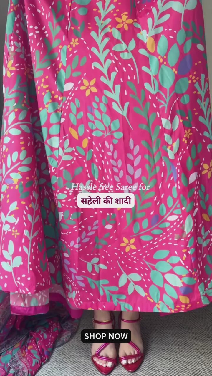 - Pink Saree:Â Elegant floral design with a sari-gown fusion for effortless grace.